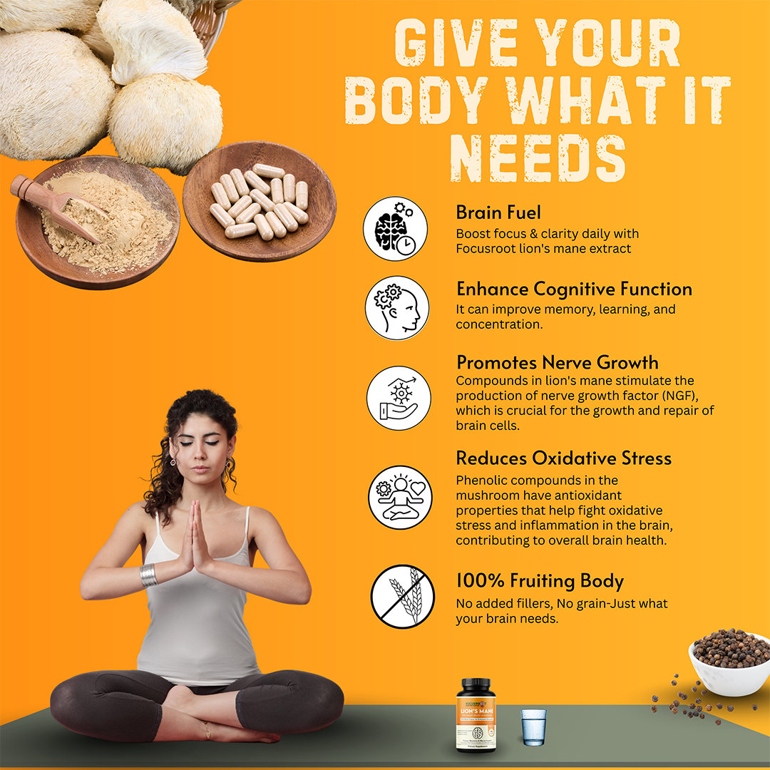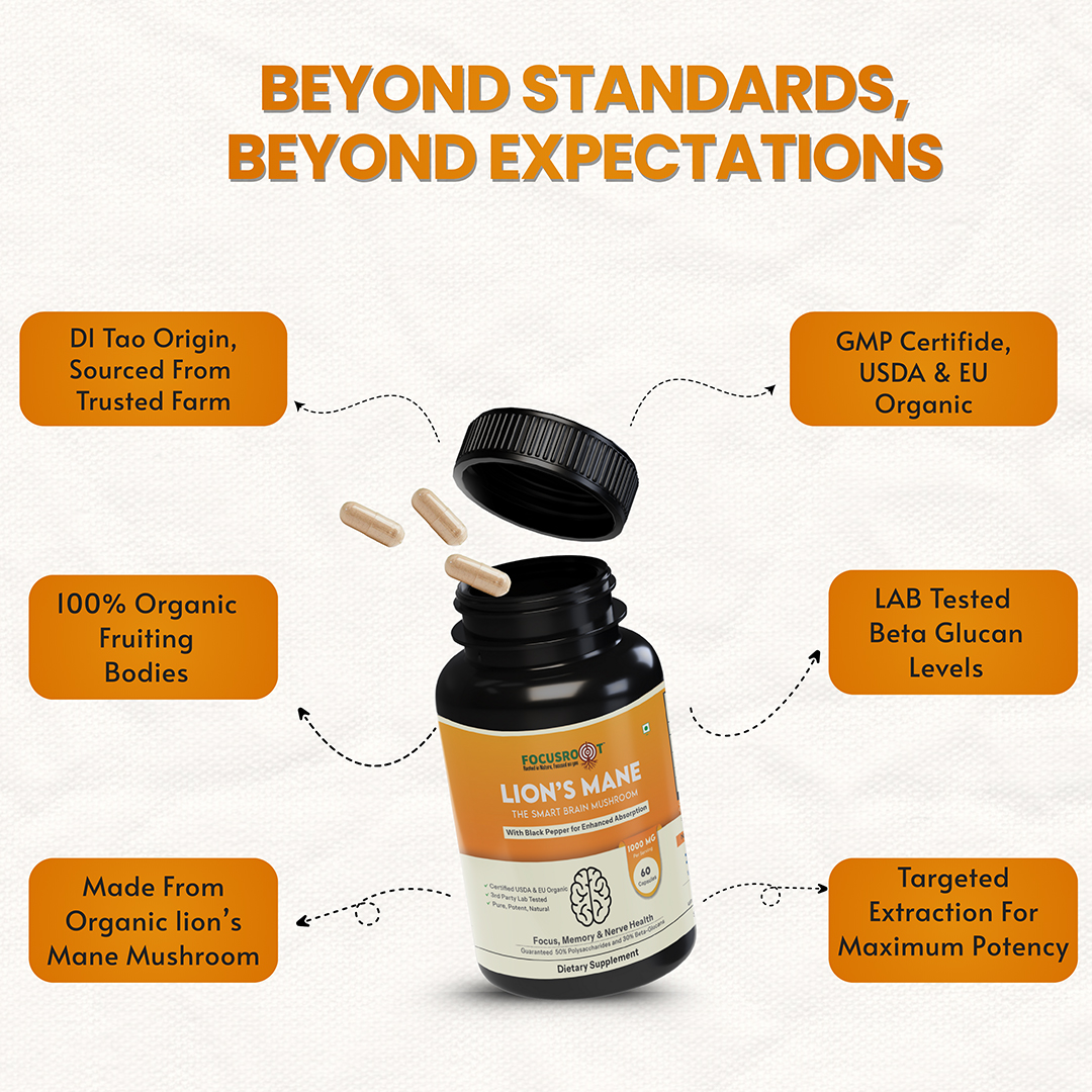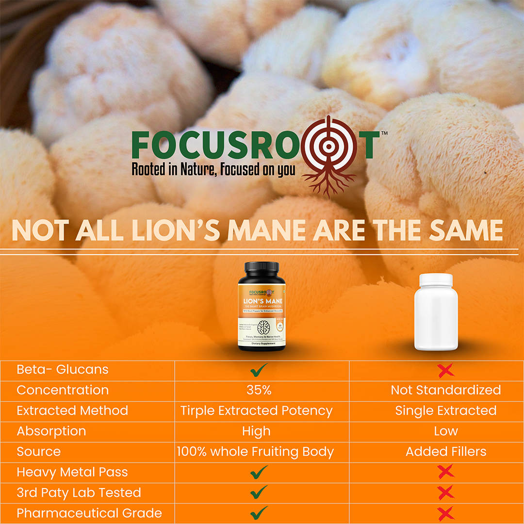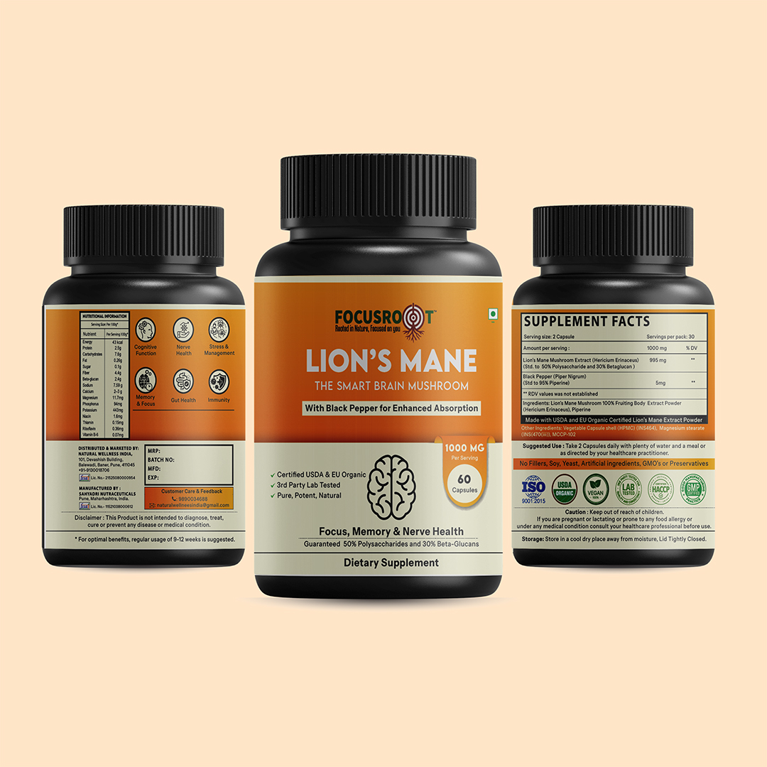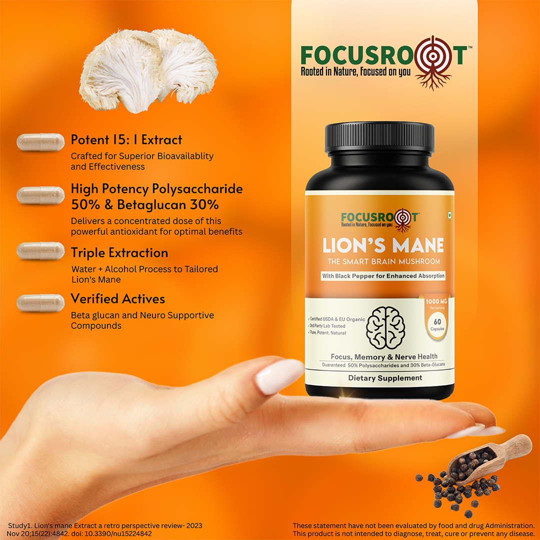 Focusroot Lion’s Mane Mushroom Capsules are crafted for individuals seeking premium, clean, and reliable cognitive wellness support.