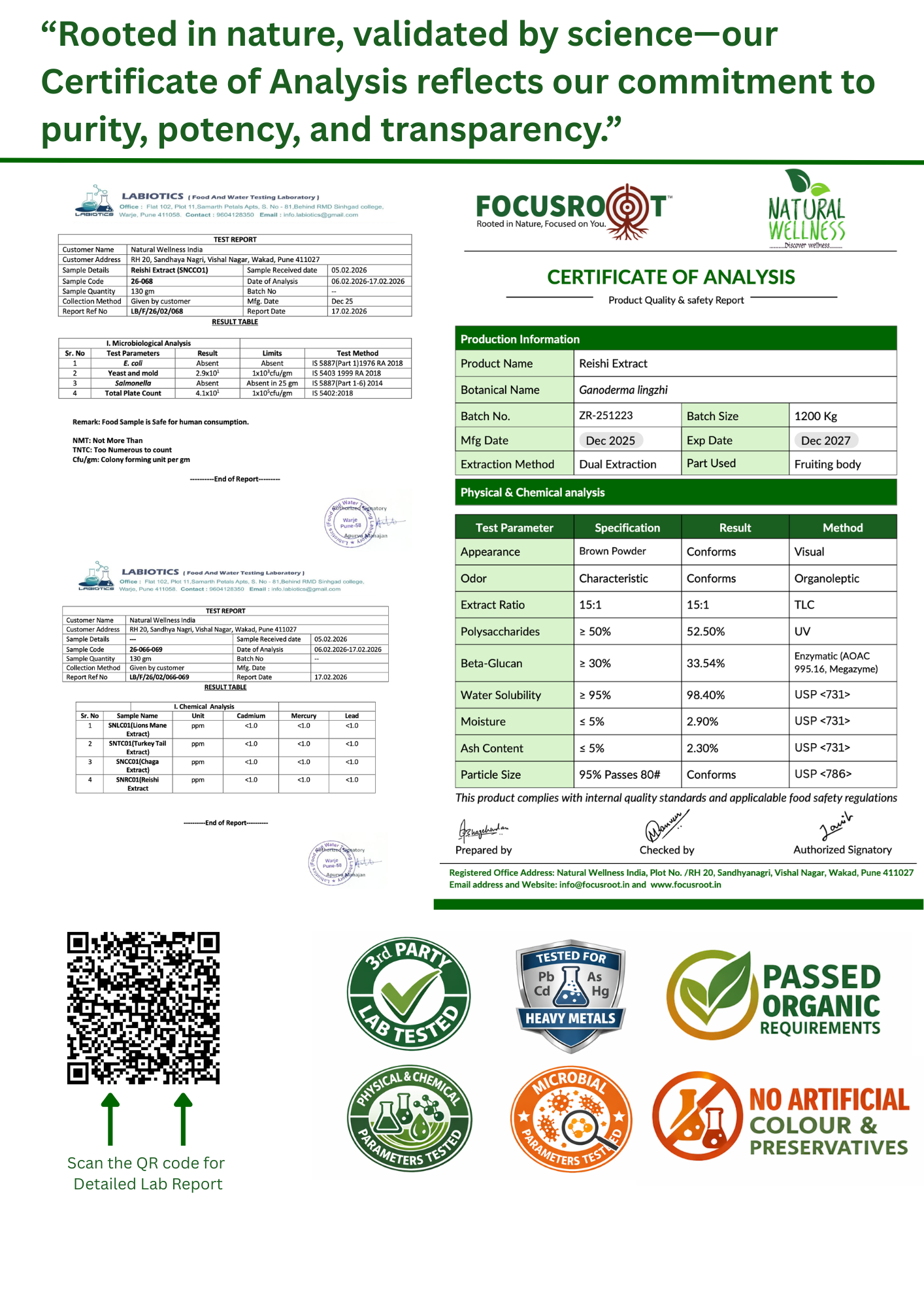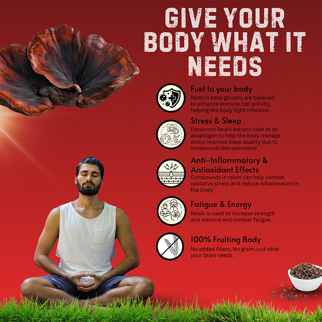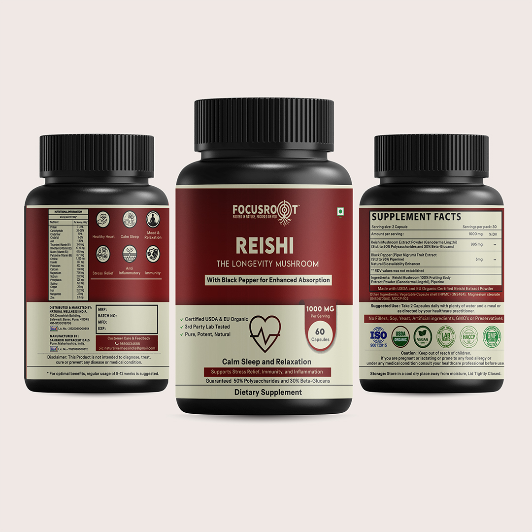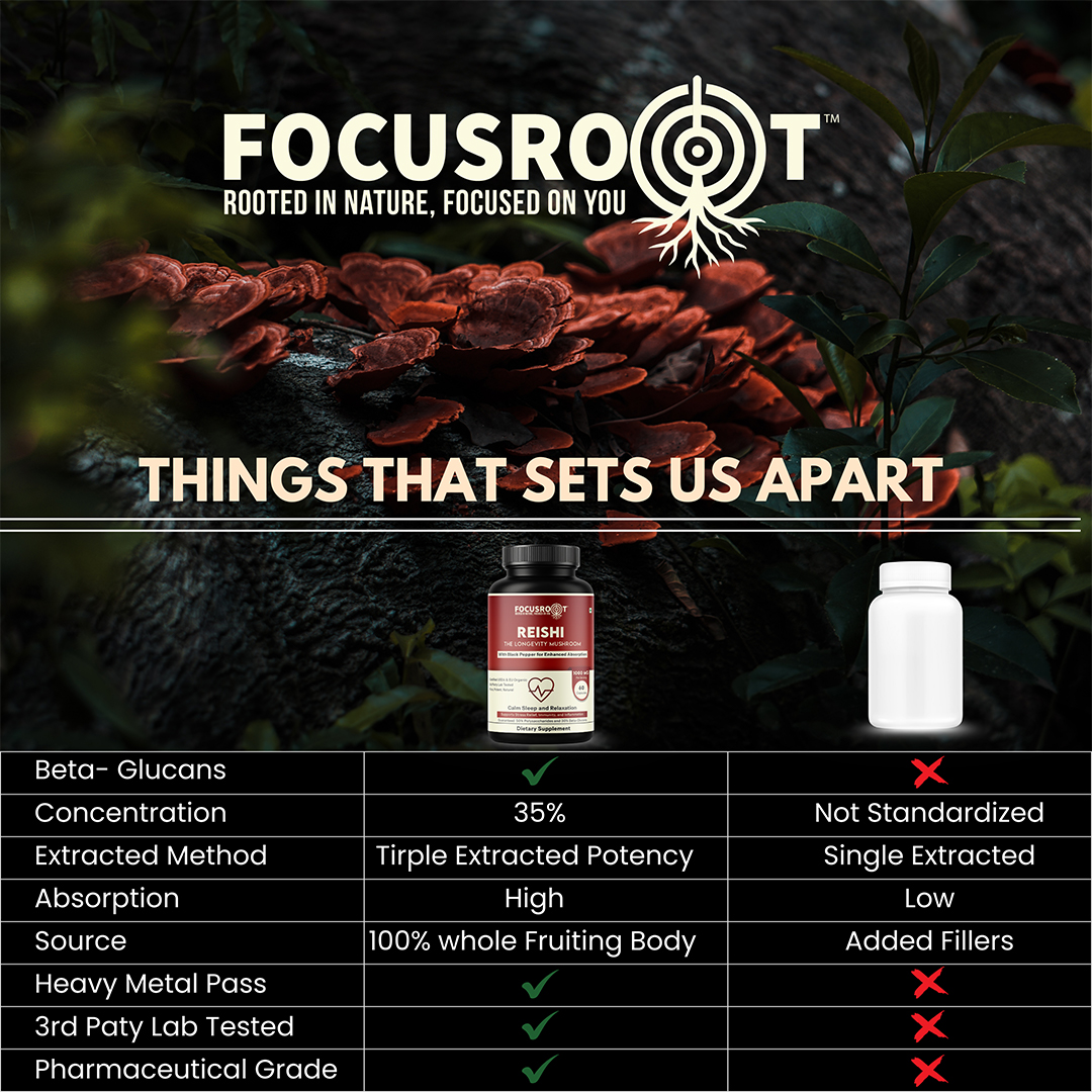 The Focusroot Difference: At FOCUSROOT, we believe that true wellness starts with quality you can trust. Our Reishi Mushroom Extract Capsules are carefully crafted to combine traditional mushroom wisdom with modern quality standards, delivering consistent and reliable daily wellness support.